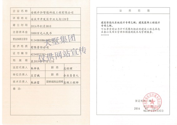 建筑智能化、裝飾工程設(shè)計(jì)專項(xiàng)乙級(jí)