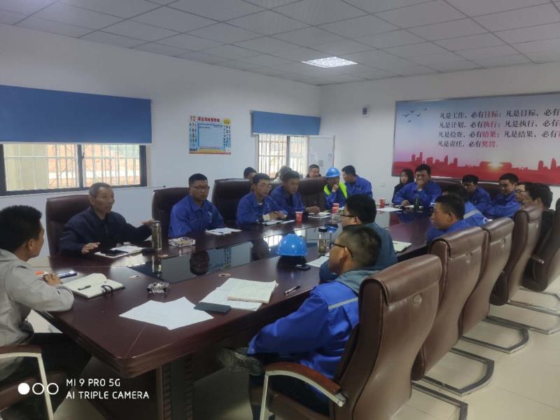 會上,項目經理對本周安全、質量、進度、成本、文明施工等方面進行回顧點評,并再三強調工作現場要對質量、安全引起重視,并對下周的工作事項進行了部署。質安部崔經理對現場安全、質量管理提出了具體要求,鼓勵大家要轉變觀念,同時對工程水穩施工進行了質量交底。