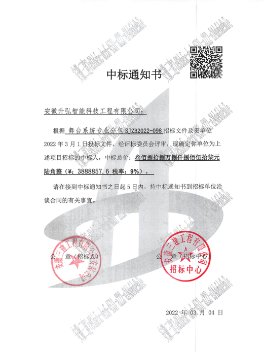 近日,安徽升弘智能科技工程有限公司成功中標合肥一中東校區項目舞臺系統專業分包工程項目,憑借自身在智慧校園建設與運營服務領域的技術實力和施工經驗,為合肥市文教衛系統開展業務工作提供有力保障。