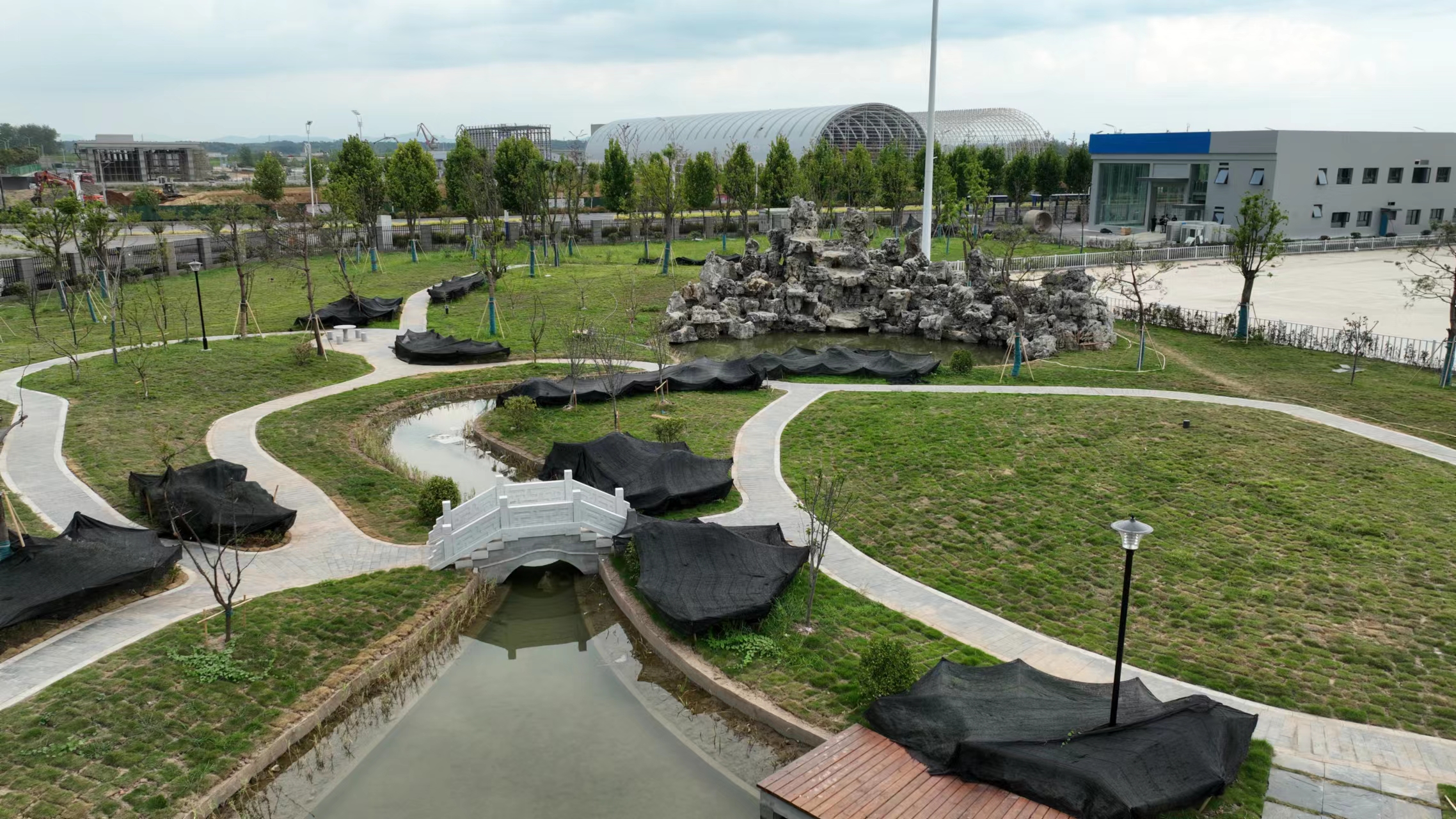 其中還包括景墻、景石、花壇、樹壇、水池、流水假山、仿古亭、石拱橋等其它景觀建筑,綠化工程的點綴讓整個基地煥然一新,瞬間變得清新、和諧,迸發(fā)出無限的活力與生機!