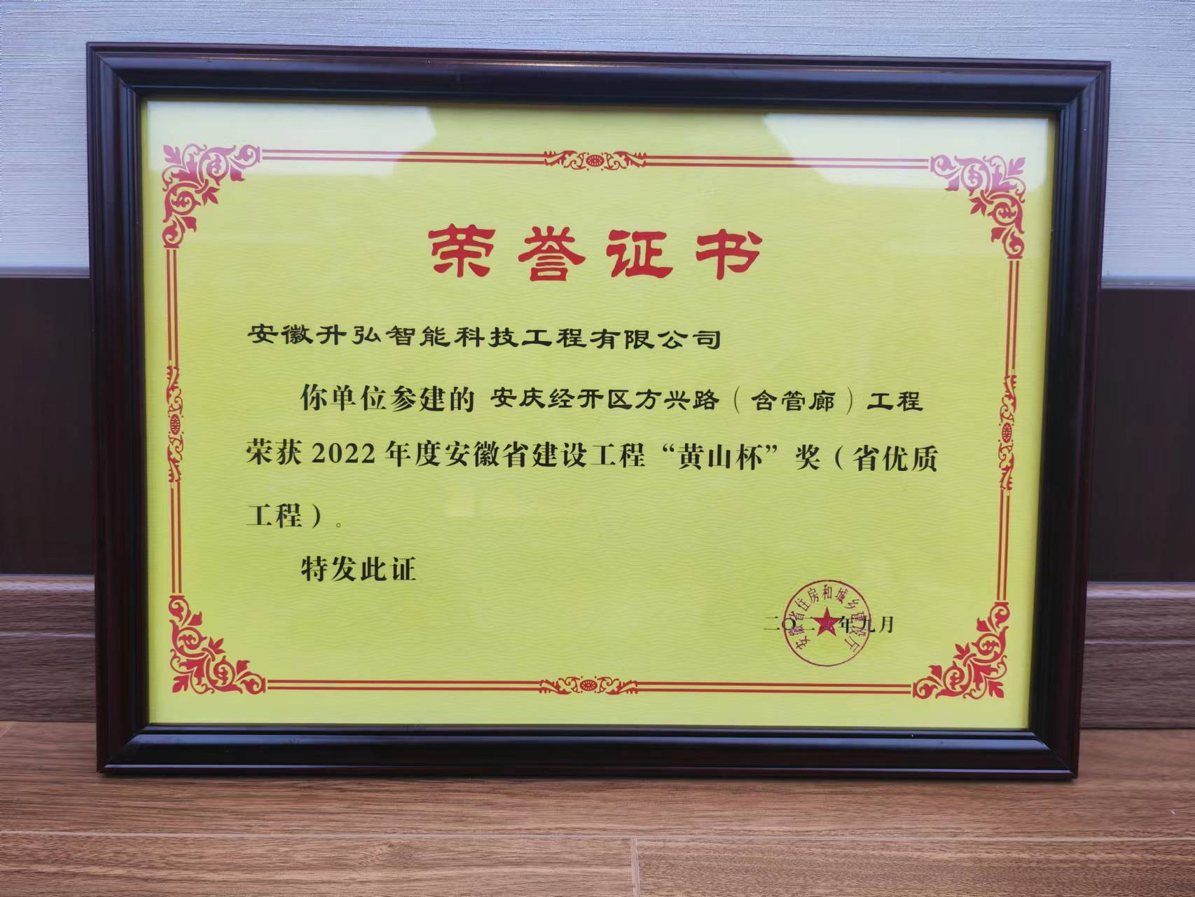近日,集團(tuán)公司子公司安徽升弘智能科技工程有限公司參建的安慶市經(jīng)開(kāi)區(qū)方興路(含管廊)工程榮獲2022年度安徽省建設(shè)工程“黃山杯”獎(jiǎng)(省優(yōu)質(zhì)工程)。