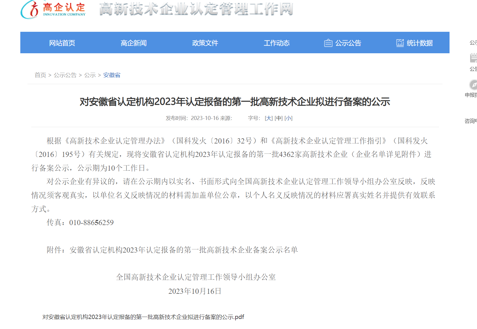 根據《高新技術企業認定管理辦法》 (國科發火 (2016)32) 和《高新技術企業認定管理工作指引》 (國科發火(2016)195)有關規定,安徽省認定機構2023年認定報備的第一批4362家高新技術企業名單已經出爐,安徽天墅建設集團成功入選。
