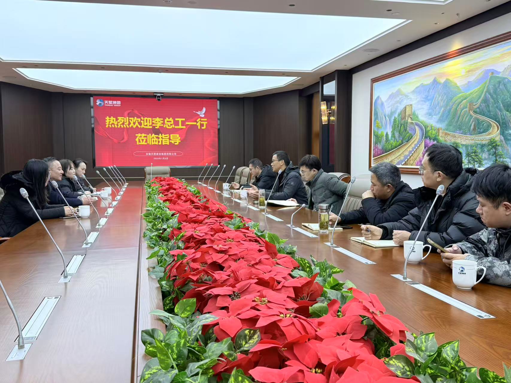 1月5日,市住房和城鄉建設局總工程師李遠東一行蒞臨我司調研指導,我集團董事長朱仲飛陪同并做匯報。