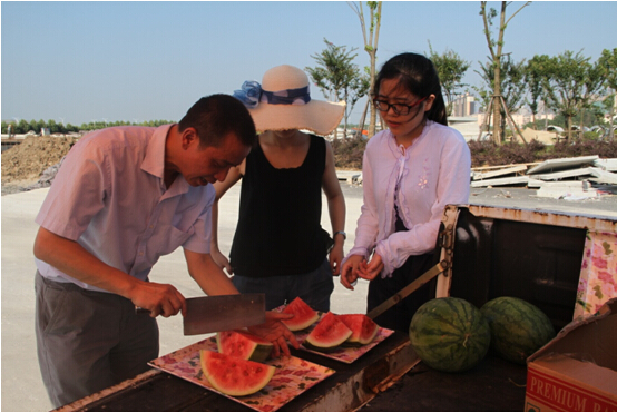 “瓜真甜!”工人們接過剛剛切好的西瓜,一邊吃一邊笑著說。清涼的西瓜,甜在嘴里,暖在心里。公司此次送西瓜進工地,不僅為施工人員送去了清涼,送去了人性化關懷,也極大地調動了項目部員工們的積極性。