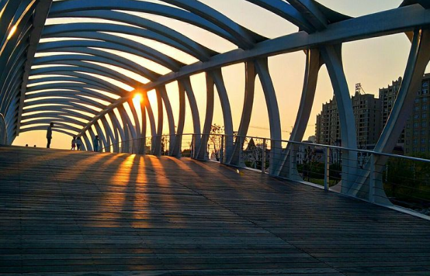 新河水系橋梁工程旨在為解決行人過河問題,改善道路交通環境、提高公園內部通行能力及搭載河道景觀欣賞功能。根據規劃設計要求,在安慶康熙河設計人行橋7座,其中1號橋、2號橋和5號橋為桁架結構,3號橋、6號橋、7號橋為鋼箱梁結構,4號橋是網架結構。7座橋梁中,2號橋和4號橋采用中國紅色彩,其余橋均為白色。工程投入使用后,為安慶市構筑低碳樂活、引領風尚的風情水岸劃上濃重一筆。