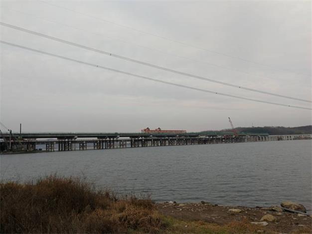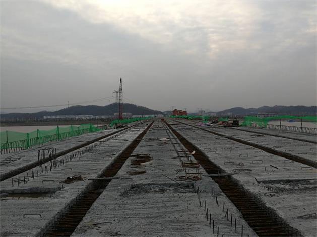 從現場施工人員處獲悉,目前該工程橋面鋪裝左右幅共完成12跨,整體工程進度超過七成,進行緊張有序的濕接縫及中橫梁工序。